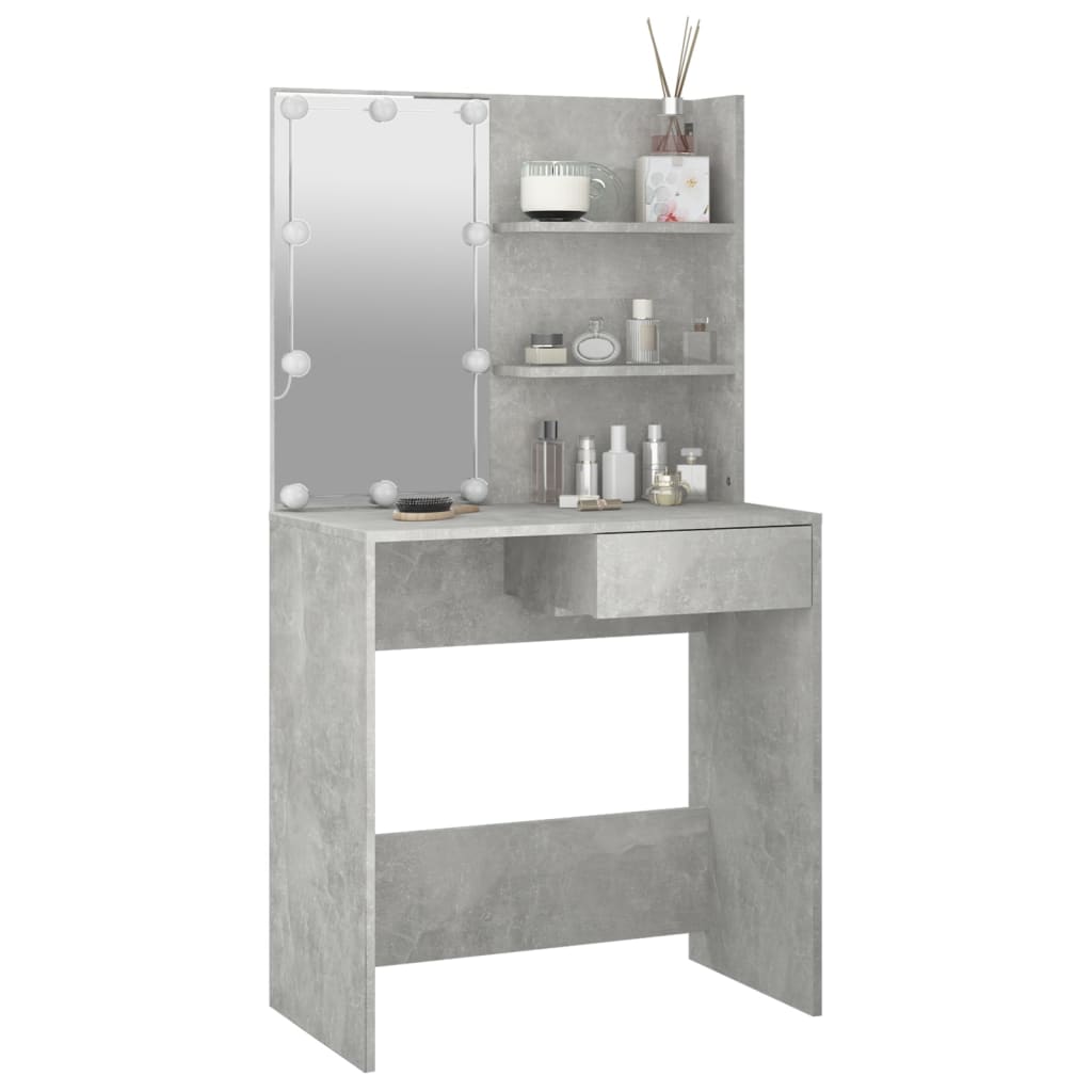Dressing Table with LED Concrete Grey 74.5x40x141 cm