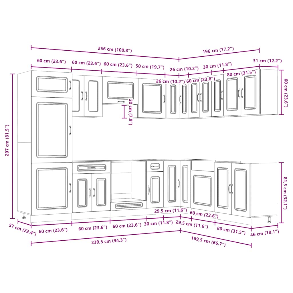 14 Piece Kitchen Cabinet Set Kalmar Gloss White Engineered Wood