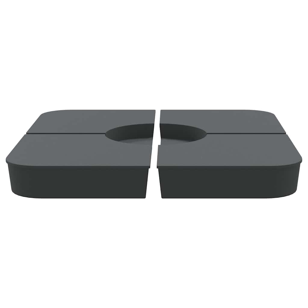 This parasol base set offers a sturdy and reliable foundation to ensure your umbrella remains stable and upright. Durable material: The parasol base is made of polypropylene to ensure high durability, wearability, and longevity.Enhanced stability: Fill the base with the amount of sand that suits your needs to create a reliable foundation, ensuring your umbrella stays securely in place. Each individual base with sand is 25 kg, and the total should be up to 100 kg.Easy to use: This parasol base set consists of four plates that can simply be put together to fix your crossbar base (not included). With a wide opening, the parasol base is simple to fill or empty with sand.Detachable and portable: Thanks to its 4-plate design, this parasol base set is detachable when not in use and can be stacked for convenient transit.Wide applications: The parasol base set is suitable for poolside, patio, garden, or any outdoor space.