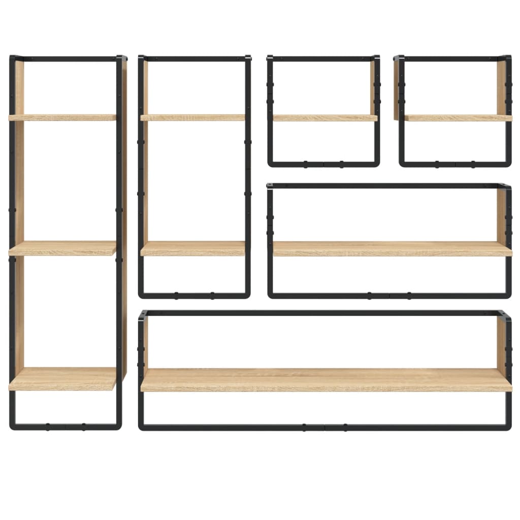 6 Piece Wall Shelf Set with Bars Sonoma Oak Engineered Wood