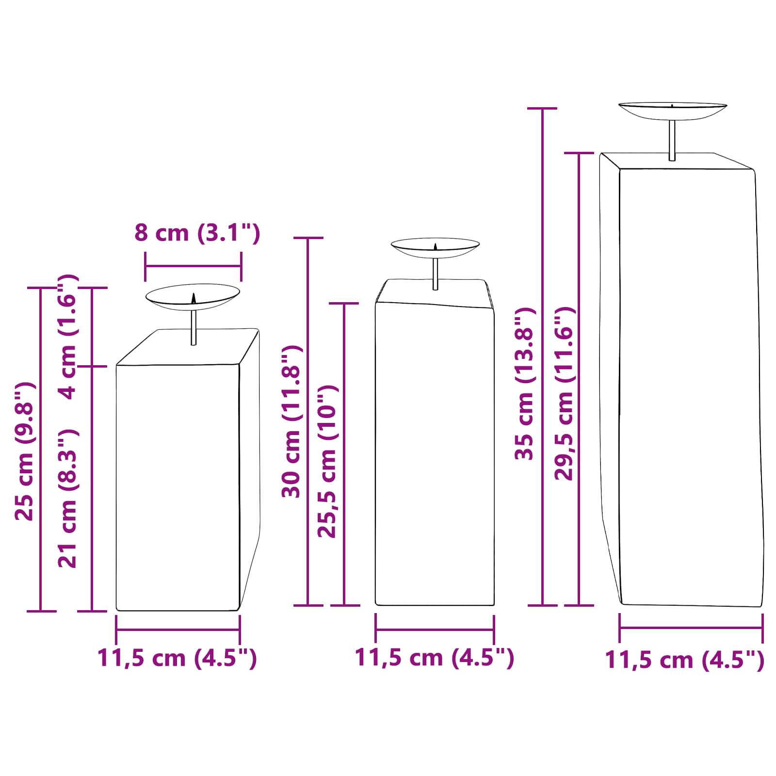 • 1 x Candle Holder: 12 x 12 x 30 cm (LxWxH)