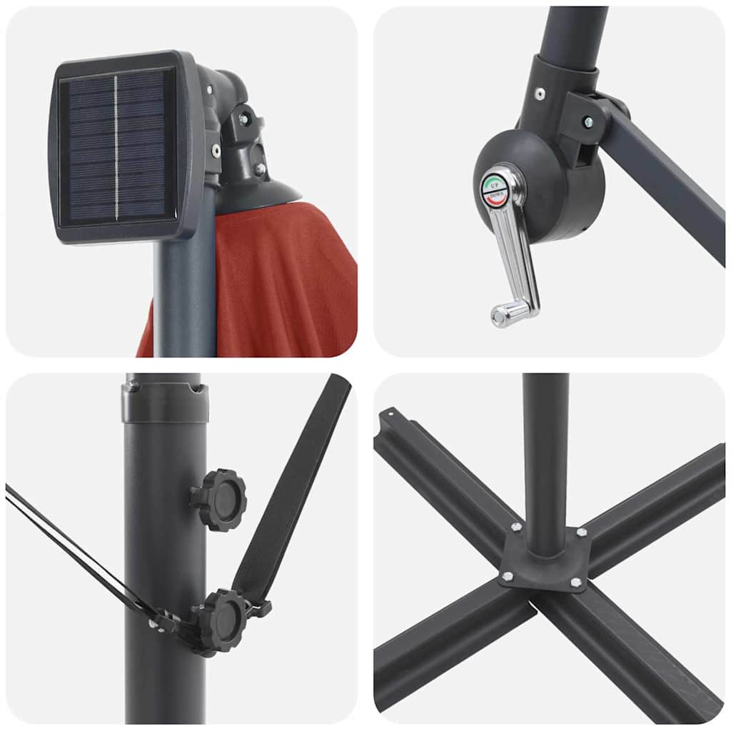 The Cantilever Offset Outdoor Umbrella is all about stylish practicality, perfect for jazzing up your garden, balcony, or terrace. With its modern and simple design, it’s a versatile pick that blends seamlessly into any outdoor scene. Its sleek look and smooth finish not only make it pleasing to the eye but provide reliable shade, great for chillaxing or hosting mates. Materials: Made with powder-coated steel, this umbrella is sturdy and won’t easily. The polyester canopy offers awesome UV protection and is water-resistant, so it stays looking fresh no matter what the weather throws at it. It’s built to last and perform well. Included Components: The umbrella comes with solar-powered LED lights, giving off a lovely glow at night without needing any extra power. The handy hand crank makes it a breeze to open and close, and the tiltable feature lets you easily adjust the shade. Features / Function / Design: This umbrella is wind-resistant, so it won’t go flying away on a breezy day. The air vent helps air circulate, stopping the canopy from flipping inside out. With the solar-powered lights, it creates a nice atmosphere for evening lounging or dining. Recommended Uses: Ideal for gardens, balconies, and terraces, it’s a handy shade solution for any outdoor occasion. Be it day or night, it fits right in for everything from lazy lounging to lively parties. Care & Maintenance: To keep your umbrella looking sharp, steer clear of harsh cleaners and use a cover when it’s not in use. A bit of waterproof spray now and then helps it stay strong against moisture.