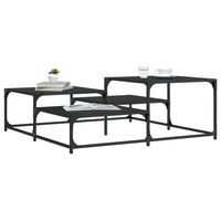Decorate your living room with this stylish coffee table, it easily blends with furniture in any style at your house. Durable material: The engineered wood is of exceptional quality with smooth surface and also features strength, stability and resistance to moisture. Made of engineered wood, the sofa table is easy to clean.Displaying function: This square coffee table consists of different height tops, which ensures that each leaf can contain its own decoration.Sturdy top: The sturdy tabletop of the couch table is ideal for placing your drinks or any other necessities you need close at hand.Metal frame: The metal frame adds an industrial style to your interior while ensuring durability and stability.Adjustable feet: The adjustable feet with plastic pads keep the centre table balanced on uneven ground and increase stability.