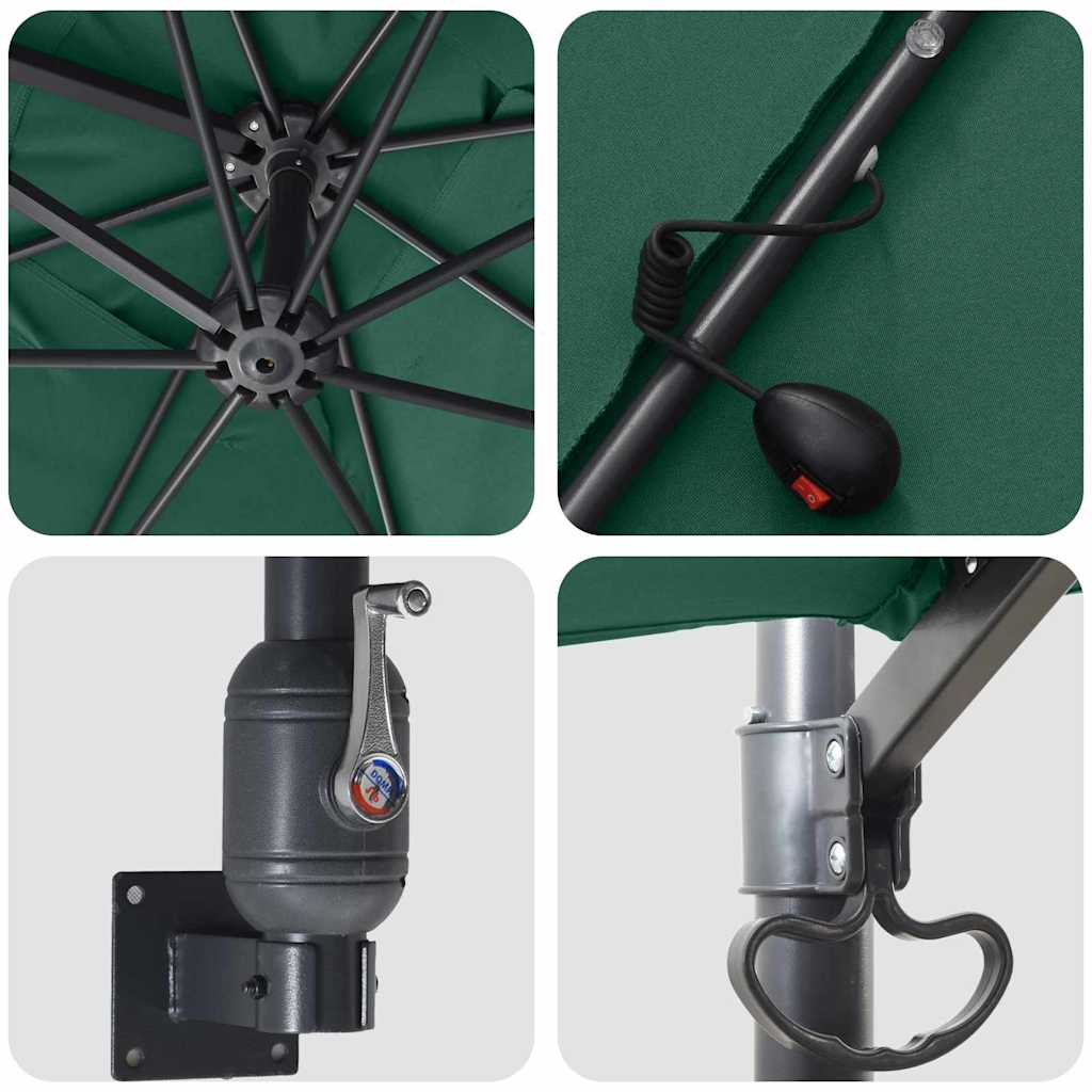 This Garden Parasol is all about mixing practicality with a modern twist, designed specifically so you can enjoy the outdoors while staying shaded and comfy this summer. The smooth polyester canopy is water-resistant, keeping you dry from light rain while looking fab in your garden or on your patio. It’s ideal for lazy afternoons or evenings outside, and with its built-in LED lights, it's not just a pretty sight but also a clever way to enjoy your outdoor chill time from day to night. LED Illumination: The parasol’s got LED lights tucked under the canopy, great for some ambient light when you're chilling in the evening. They're solar or battery-powered, so no messy cables to hassle with. Adjustable Mechanism: With its hand crank, the umbrella opens and closes easily, perfect for grabbing some shade when you need it. Plus, the tilt feature helps you angle the canopy just right for better sun protection, keeping you comfy no matter how bright it gets. Modern Design: This parasol flaunts a sleek, modern design with clean lines that lifts the look of any outdoor space. Its simple style not only looks good but fits into loads of outdoor settings effortlessly. Water-Resistant Fabric: Made from water-resistant polyester, it offers top-notch shade and light rain protection. So you can kick back and relax outdoors without worrying about sudden weather changes. Low Maintenance: Keeping it in good nick is easy—just pop a waterproof cover on when it’s not in use. A spray of waterproof treatment from time to time will keep it looking fresh and extend its life.