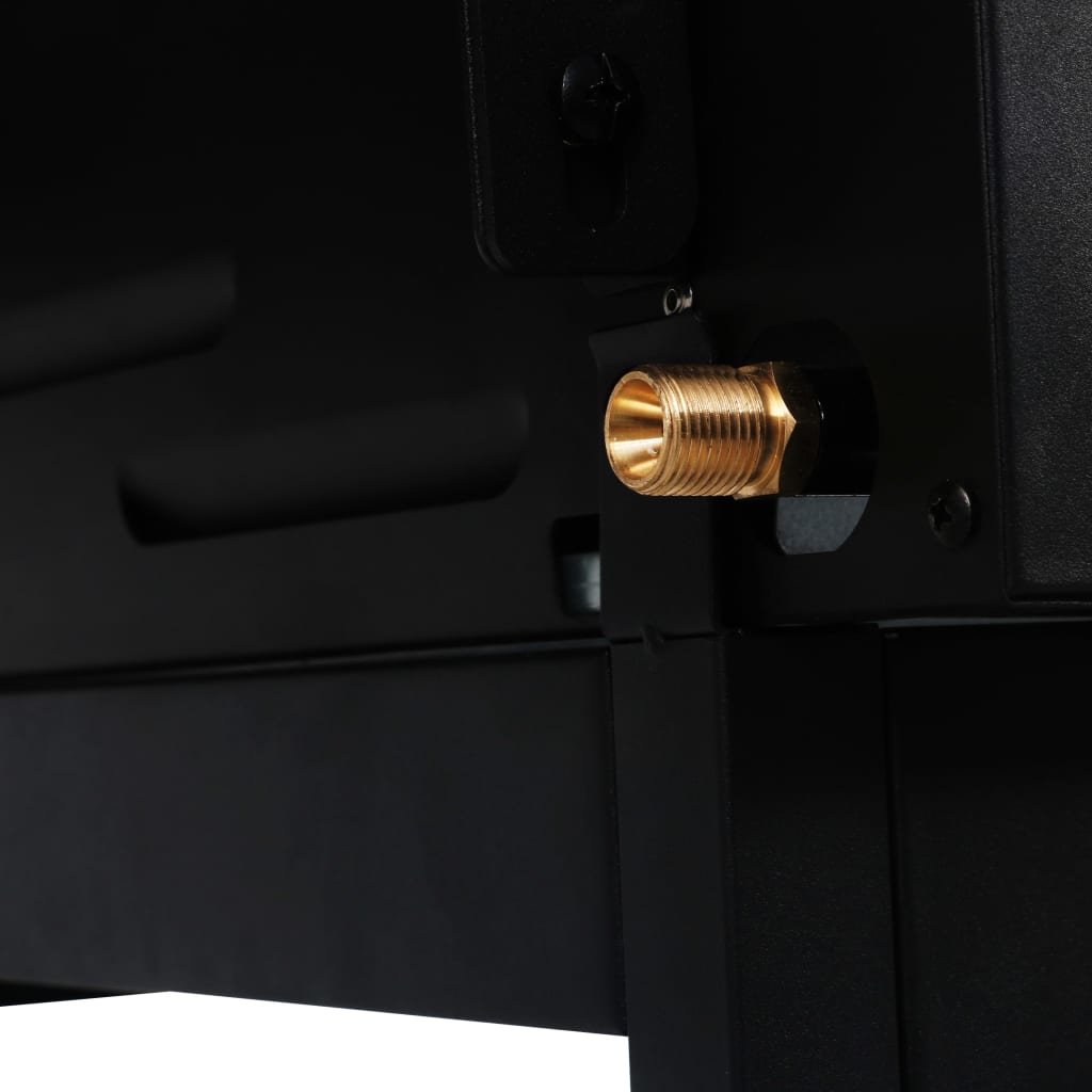 This gas & charcoal combo grill is ideal for creating an outdoor feast for your family and friends. It will make your outdoor cooking experience sizzle, turning your backyard into a second kitchen! The combo grill features a charcoal cooking area and a gas cooking area with 3 burners. It has 2 heavy-duty hoods, each with a built-in thermometer which displays the cooking temperature. Two foldable side tables offer additional space for making sauces or your favourite side dishes. Made of heavy-duty materials, the combo grill is very durable. The cabinet and shelves underneath provide space to store kitchen supplies. Thanks to the 2 sturdy wheels, the outdoor grill is easy to move around when needed (please do not move it during use). Note: To connect the barbecue to the gas cylinder, a gas hose and a proper pressure regulator are required, which are not included in delivery.