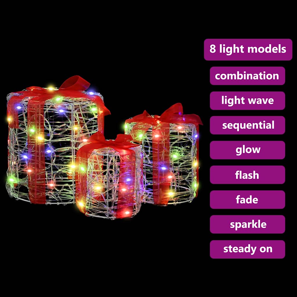 Gift Box Decoration 3 pcs Colourful 20 x 20 x 21 cm Acrylic