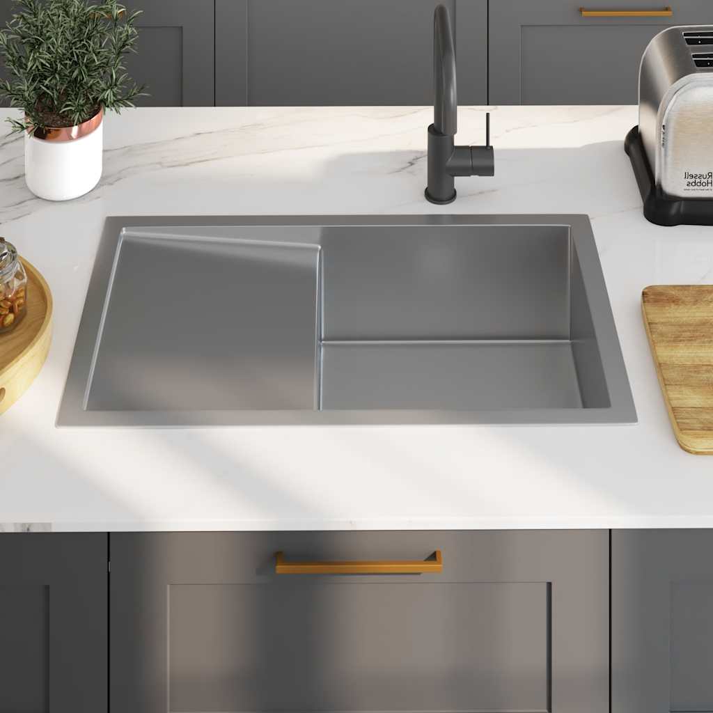 Enjoy the advantage of this kitchen sink with clean contemporary designs. The bowl with a drainboard in silky smooth satin finish will ooze class and sophistication, which will fit any kitchen decor! Combing the best in function and design, this sink is crafted of high-graded handmade stainless steel in anti-condensation paint, mould proof, lead free and corrosion resistant. It is sound proofing with the sound-reduction pads. Additionally, the bowl with a unique X-flume design facilitates quick flow, preventing standing water in the bottom of the basin. The sink can be fitted as undermount, flush mount and drop in and you can have it in any way you prefer.