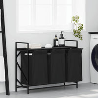 Laundry Basket 3 Compartments with Shelf Black Oak