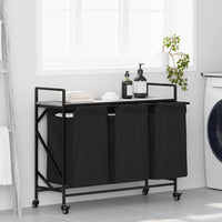 The laundry basket provides a spacious and convenient storage solution, featuring pull-out bags and wheels that make organising and transporting your laundry effortless. Laundry sorter: Designed to offer a generous load of laundry per bag, this organiser helps categorise garments by colour or fabric type, maintaining a clutter-free laundry area, and also storing toys and more.Convenient pull-out laundry bags: The removable laundry bags are designed with pull-out handles and hook-and-loop fasteners for easy detachment and pulling. The reinforced bottom panels help maintain the bags' shape and prevent sagging.Robust and durable structure: This laundry basket combines a steel frame with durable engineered wood, offering excellent strength, wear resistance, and stability.Top storage surface: The laundry basket features a top shelf, offering a practical solution for keeping your essentials within easy reach. Perfect for storing toiletries, laundry detergents, fabric softeners, or even decorative items.Effortless mobility: Featuring durable wheels for easy movement, this laundry basket allows you to smoothly roll it from room to room. Two of the wheels are equipped with brakes, ensuring that once you've placed the basket where you need it, it stays securely in place without rolling away.