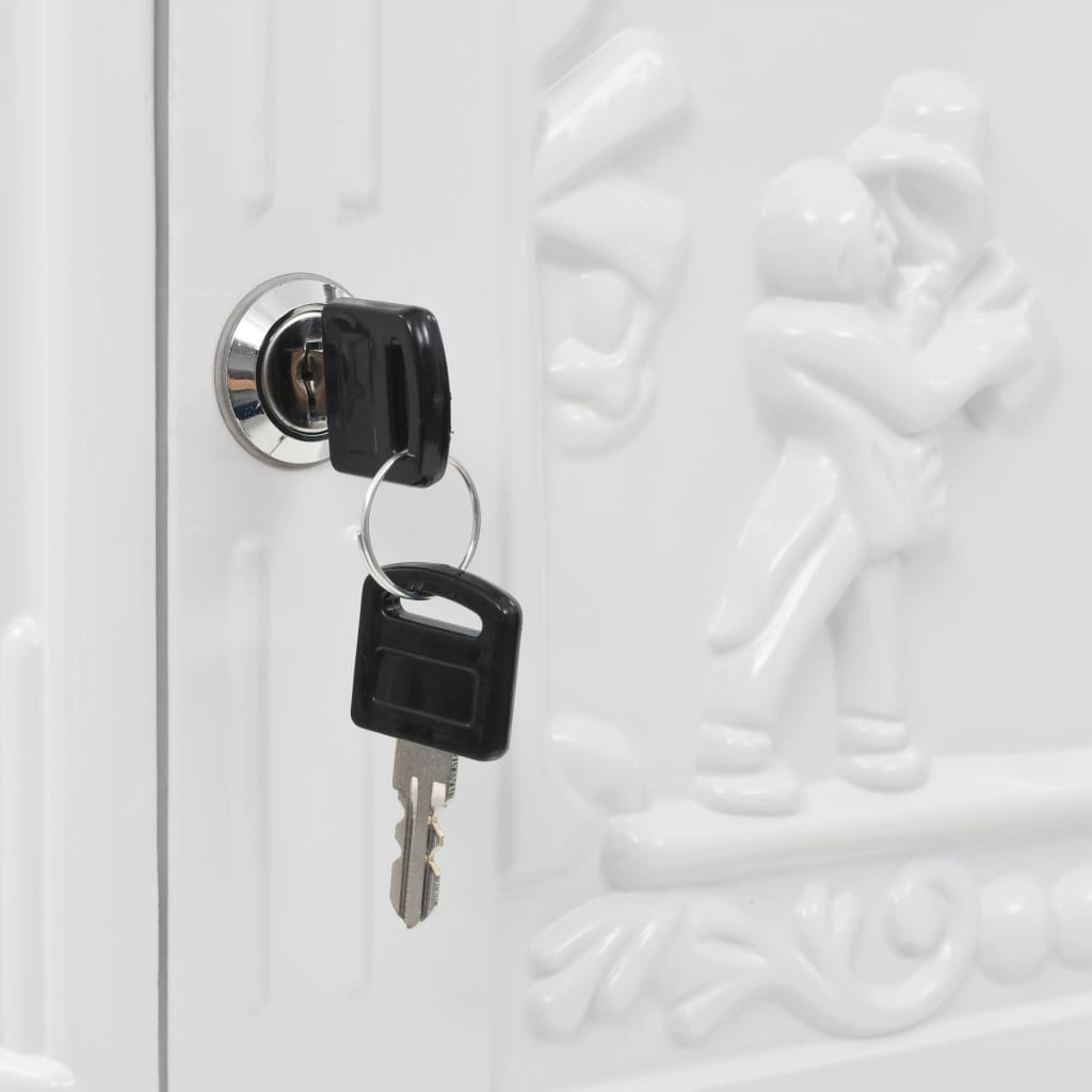 Our beautiful, antique-style pedestal letterbox will make a practical as well as decorative addition to your garden or entrance at home or your place of business. This mailbox is designed with a wide mail slot that has a flap to protect the contents from the elements and a lockable door (2 keys included) for easily taking out the letters. The letterbox is made of weather-resistant and rustproof cast aluminium, which makes it very suitable for outdoor use. It is adorned with an abundance of exquisite, vintage-style decorative details and will become a real eye-catcher in your driveway or entryway.