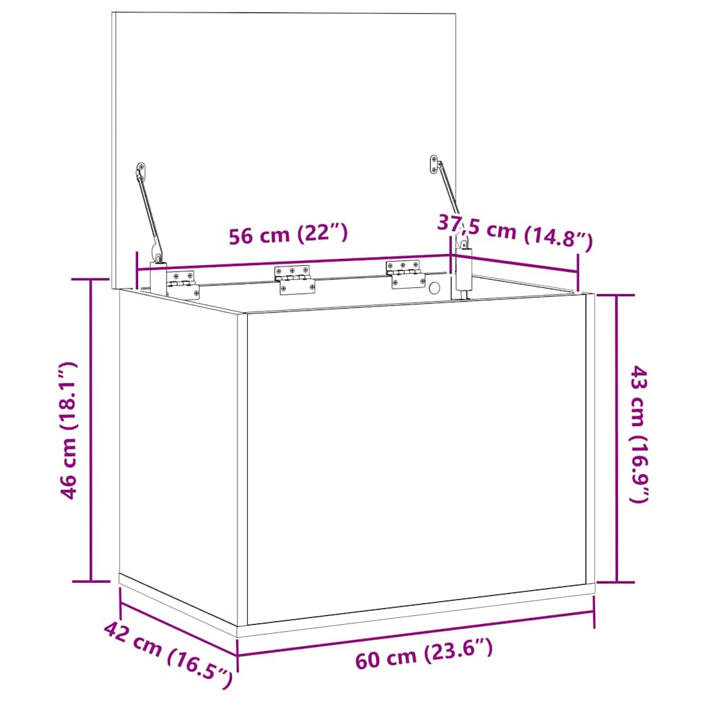 Storage Box Black oak 60 x 42 x 46 cm Engineered Wood