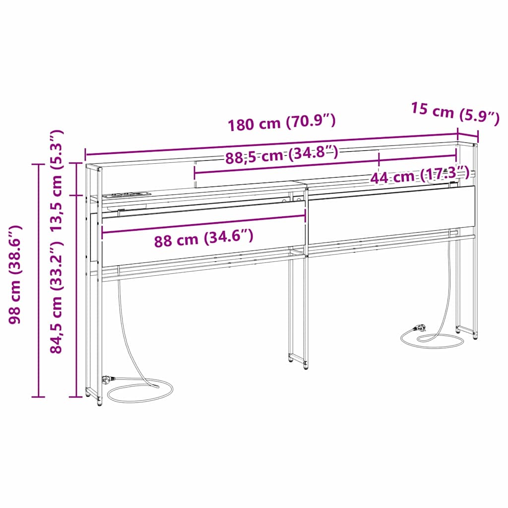 Storage Headboard Black oak 180 cm Engineered wood