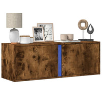 TV Wall Cabinet with LED Lights Smoked Oak 100x31x35 cm