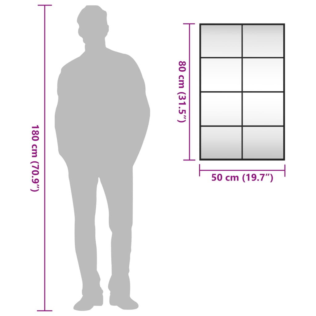 Wall Mirror Black 19.7"x31.5" Rectangle Iron