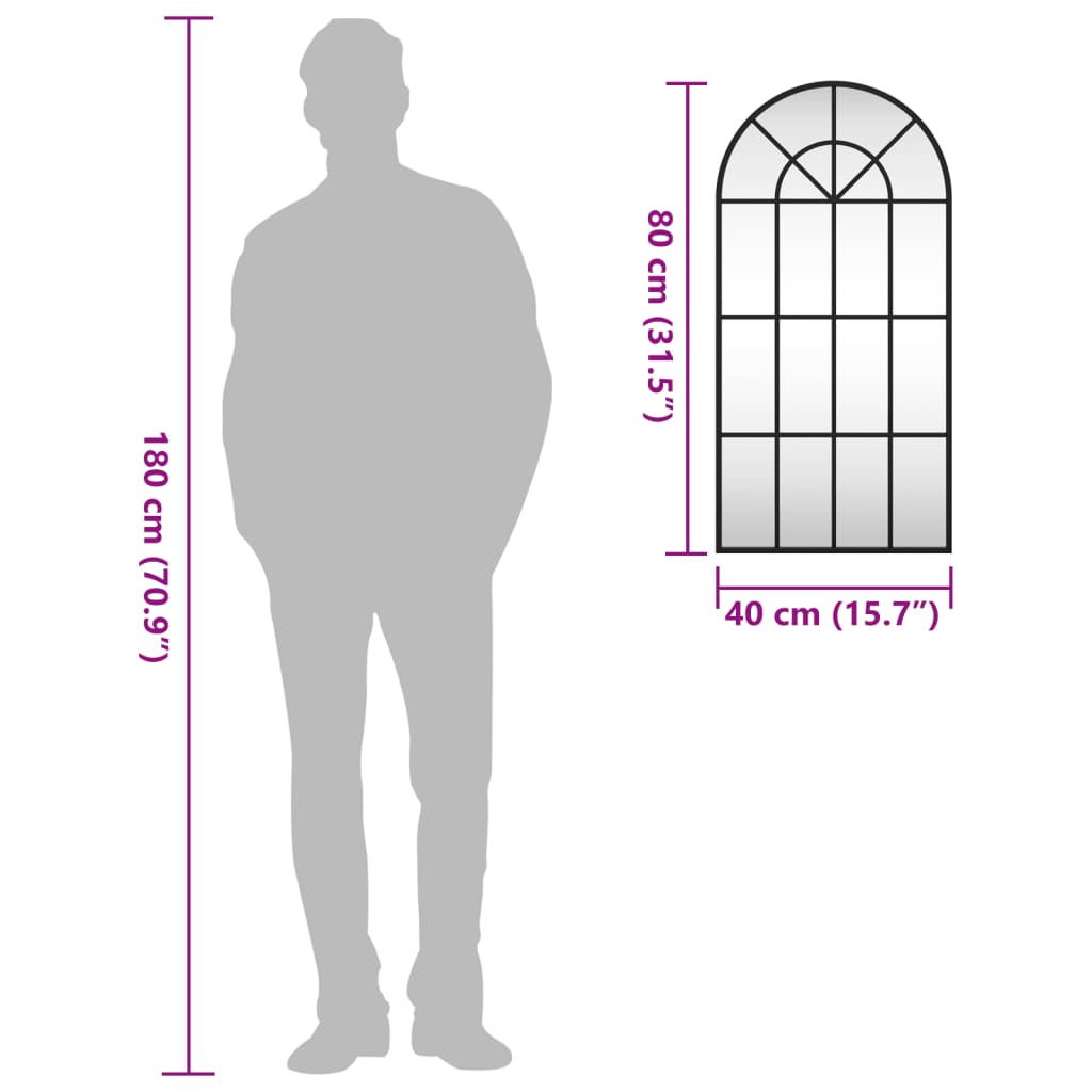 Wall Mirror Black 40x80 cm Arch Iron